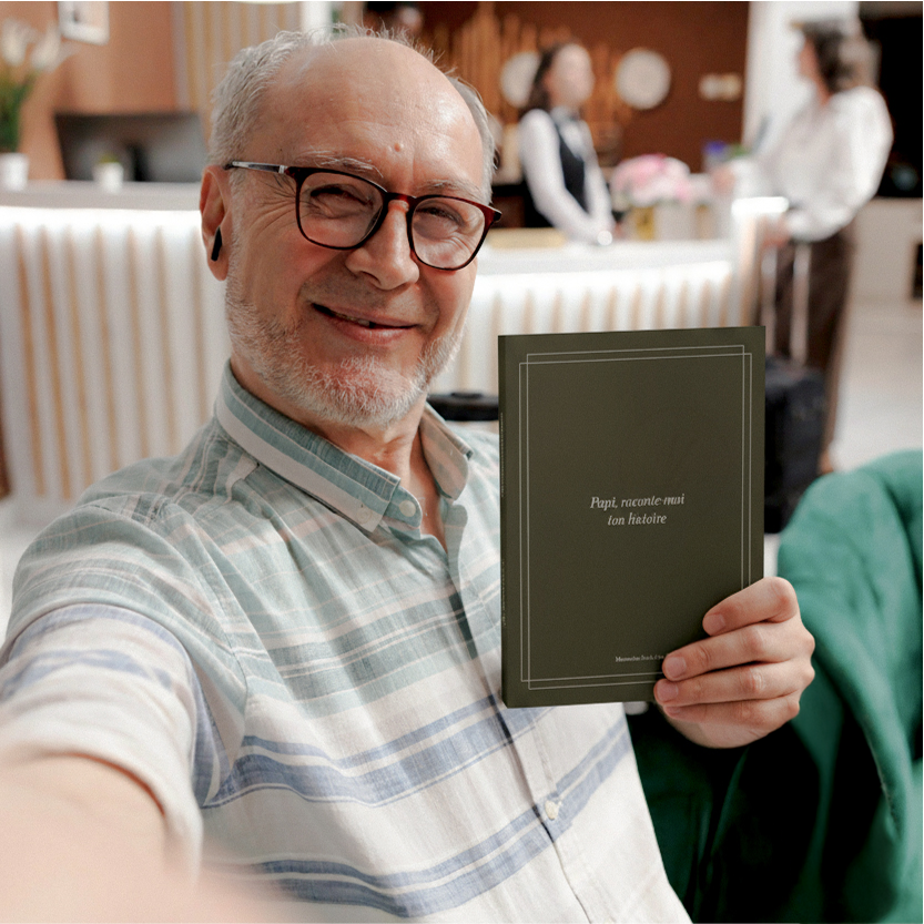 Give your dad or mom a unique book to tell their story. Guided by simple and touching questions, they will share their memories, their emotions and the moments that have marked their life. A gift full of love that becomes a family treasure.